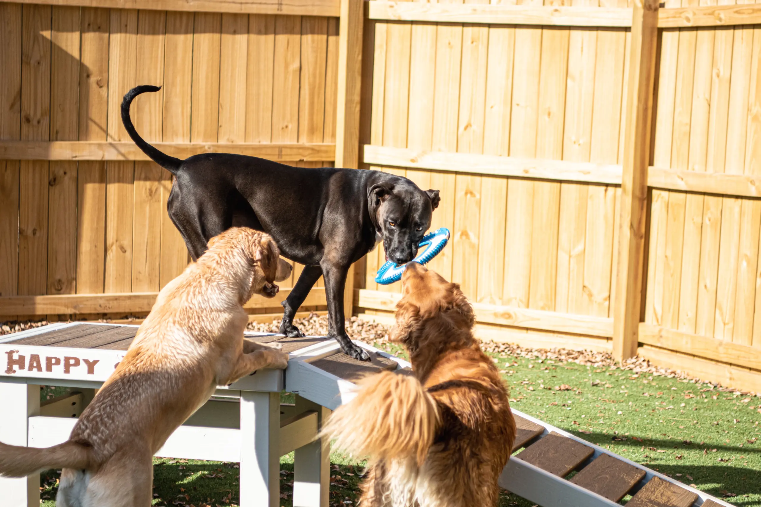 At Happy Tails, we utilize a rotation of engaging open play, stimulating exercise, cozy calming stations, enrichment activities, optional training walks, and healthy snacks to ensure long lives and better behavior.